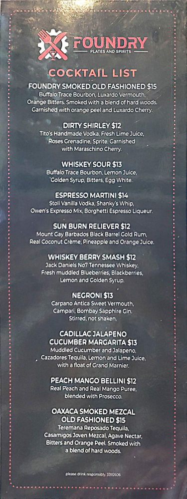 Join us at The Foundry Plates & Spirits for a memorable meal that leaves you eager to return for more!